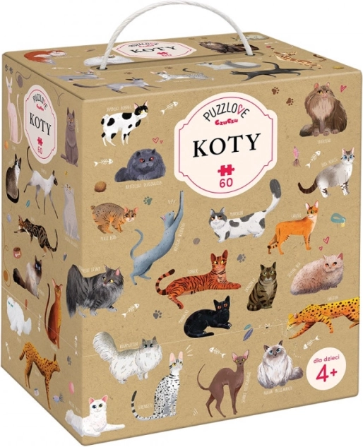 Miau, miau! Lustige und geheimnisvolle Katzen laden Kinder zum Spielen mit den großen 60-teiligen Puzzles ein, die Katzen verschiedener Rassen zeigen. Trainieren Sie Geduld und Aufmerksamkeit mit dieser tollen Motivation für spaßige Aktivitäten. CzuCzu weiß, wie ansteckend die Freude am Puzzeln ist!