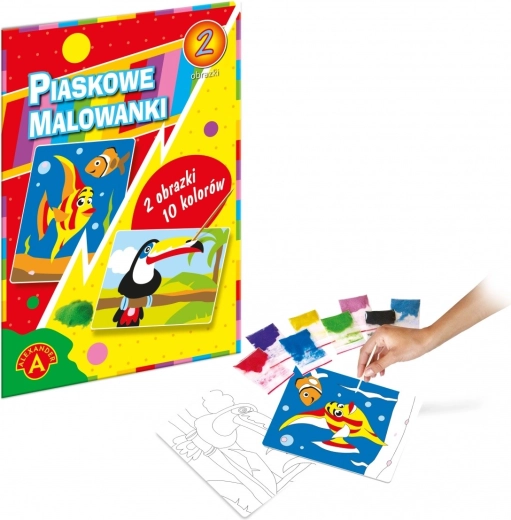 Das Sandbild-Malset Fisch und Tukan bietet eine einfache und saubere Möglichkeit, Kindern die kreative Gestaltung näherzubringen. Einfach die selbstklebenden Teile der Vorlage abziehen, die gewünschte Sandfarbe aufstreuen und sanft verteilen. Jeder Schritt ist intuitiv und macht Spaß – das Ergebnis ist stets leuchtend und einzigartig.