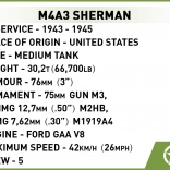 Das Bausteinmodell des Sherman ist detailliert ausgearbeitet und enthält verschiedene Zubehörteile des ursprünglichen Panzers. Besonders beachtenswert ist die hervorragend gestaltete Figur des Panzerkommandanten. Auf dem Panzer befindet sich auch eine Tafel mit einem gedruckten Namen.