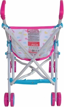 Der Puppenwagen Milly Mally Julia Candy verbindet eine realistische Optik mit robuster Verarbeitung, um Kindern beim Eltern-Rollenspiel maximalen Spaß und Komfort zu bieten. Der leichte Metallrahmen lässt sich leicht lenken, Kunststoffräder sorgen für eine sanfte Fahrt und die Gurte halten die Puppe sicher an Ort und Stelle.