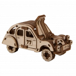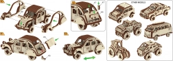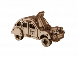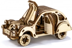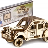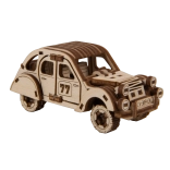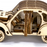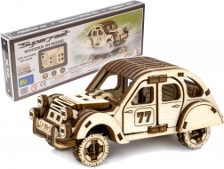 Dieses Modell eines Rallyewagens bietet eine fesselnde Kombination aus kreativem Spaß und eleganter Wohnraumdekoration. Die Teile aus erstklassigem Birkensperrholz greifen präzise ineinander – ohne Klebstoff und Schrauben – und ergeben ein eindrucksvolles Retro-Automobil mit vielen feinen Details.