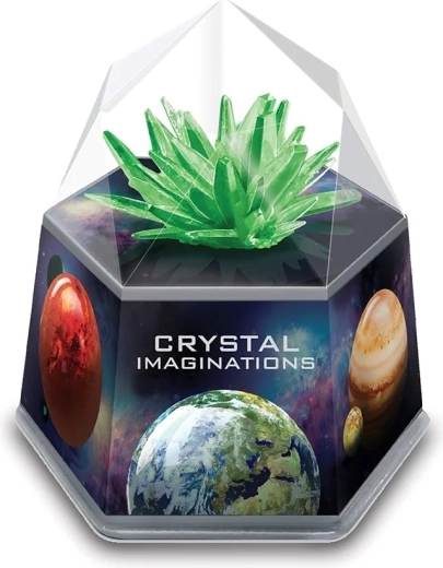 Präsentiere sie allen in einer einzigartigen Weltraumkapsel-Vitrine und stelle deine eigene Kristallsammlung zusammen. Größe, Form und Farbe deines Kristalls können je nach Versuchsbedingungen variieren.