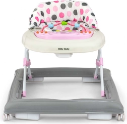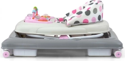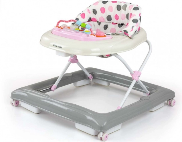Vier hochwertige, drehbare Räder, die den Boden nicht zerkratzen, sorgen für Bewegungsfreiheit, und acht Gummistopper schützen das Kind vor dem Abrutschen von Treppen oder anderen Hindernissen.
