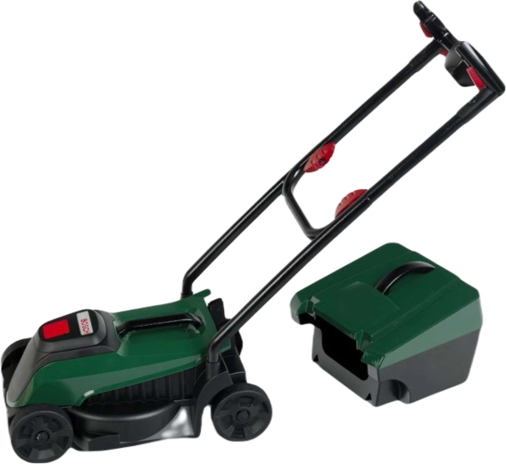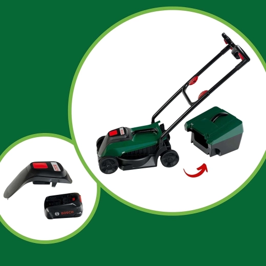 Die leichte Konstruktion mit hohlem Inneren ist für Kinder sicher und bequem. Der abnehmbare Korb erhöht die Authentizität des Spiels, und der praktische obere Tragegriff erleichtert das Transportieren. Am Griff befindet sich eine Attrappe eines elektrischen Starters, die die Fantasie und das Rollenspiel fördert. Das Modul ist batteriebetrieben und kompatibel mit weiteren BOSCH‑Spielzeugen.
