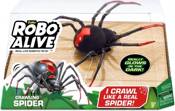 Die Spinnenfigur aus der Serie Robo Alive hat einen behaarten schwarzen Bauch, lange gegliederte Beine und bedrohlich hervortretende Kiefer. Der Körper dieses Biests leuchtet zudem im Dunkeln, sodass sie sowohl bei Tageslicht als auch in der Nacht für Schrecken sorgt. Die Spinne ist mit einem speziellen Mechanismus ausgestattet, mit dem sie sich mit schwindelerregender Geschwindigkeit fortbewegt; ihre kriechende Bewegung und ihr behaarter Körper erschrecken jeden!