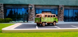 Authentische Ausschnitte für Fenster, Türen und Räder verleihen dem Minibus einen einzigartigen Vintage-Look. Perfekt als Deko und Sammlerstück.