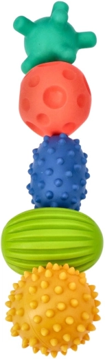 Jeder Ball hat eine einzigartige Oberfläche mit Noppen und Rillen. So erhält das Kind vielfältige haptische Reize und entwickelt auf natürliche Weise das Tastrezeptionsvermögen und die Feinmotorik.