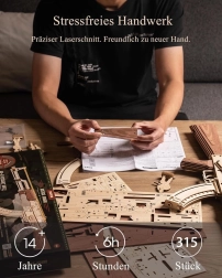 Das Modell ist eine gelungene Kombination aus technischer Herausforderung und hochwertiger Holzverarbeitung. Es überzeugt als stilvolle Dekoration fürs Arbeitszimmer oder den Wohnraum und sorgt zugleich für Unterhaltung bei Präzisionswettbewerben. Das Produkt ist für Baumeister ab 14 Jahren bestimmt. Nicht auf Menschen oder Tiere zielen; Verpackungsmaterial ist kein Spielzeug.