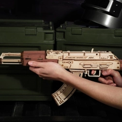 Dieses 3D-Holz-Mechanikpuzzle im Maßstab 0,8:1 bietet ein realistisches Bauerlebnis und einen authentischen Look. Die Teile sind präzise lasergeschnitten, passen perfekt ineinander und Sie benötigen keinen Klebstoff. Nach dem Zusammenbau erfreuen bewegliche Elemente und die Möglichkeit zu sicherem Spaß mit Gummiband-Schüssen auf die beiliegenden Zielscheiben.
