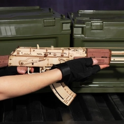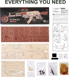 Bauen Sie ein detailreiches Holzmodell des legendären AK-47-Sturmgewehrs und genießen Sie cleveren Bastelspaß ganz ohne Klebstoff. Das Set enthält 315 präzise lasergeschnittene Teile, einen funktionsfähigen Mechanismus zum Abschießen von Gummibändern und Holz-Zielscheiben für sicheres Training. Ideal für kreative Entspannung, als Dekoration und als originelles Geschenk für Enthusiasten ab 14 Jahren.