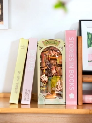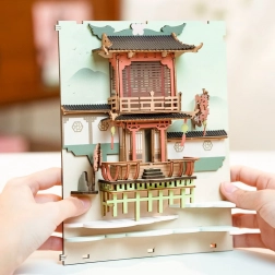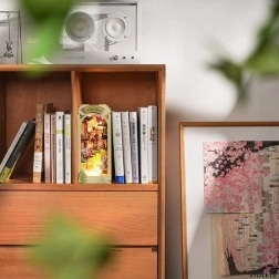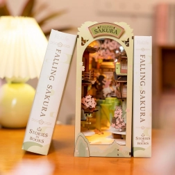 Verwandeln Sie Ihr Regal in einen poetischen Durchgang zwischen den Büchern. Die hölzerne Buchstütze FALLING SAKURA vereint ein dekoratives Diorama mit einer praktischen Stütze für Bücher. Dank der warmtonigen LED-Hintergrundbeleuchtung kommen die feinen Details japanischer Architektur und der Kirschblüten zur Geltung, und das abendliche Lesen gewinnt eine neue Dimension.