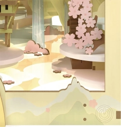 Die detailreiche japanische Szenerie mit einfacher Lichtsteuerung zieht Sie in ihren Bann. Im Regal wirkt sie wie ein kleiner Durchgang in die Welt der blühenden Kirschblüten.