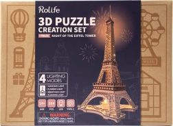 Erleben Sie den Zauber von Paris bei Ihnen zu Hause. Das Modell Rolife Nacht des Eiffelturms fängt die ikonische Gitterarchitektur von 1889 getreu ein und verwandelt sich dank integrierter LEDs nach dem Aufbau in ein dekoratives Nachtlicht mit sanfter, romantischer Atmosphäre. Präzise lasergeschnittene Holzteile fügen sich passgenau zusammen und sorgen für entspanntes Bauen.