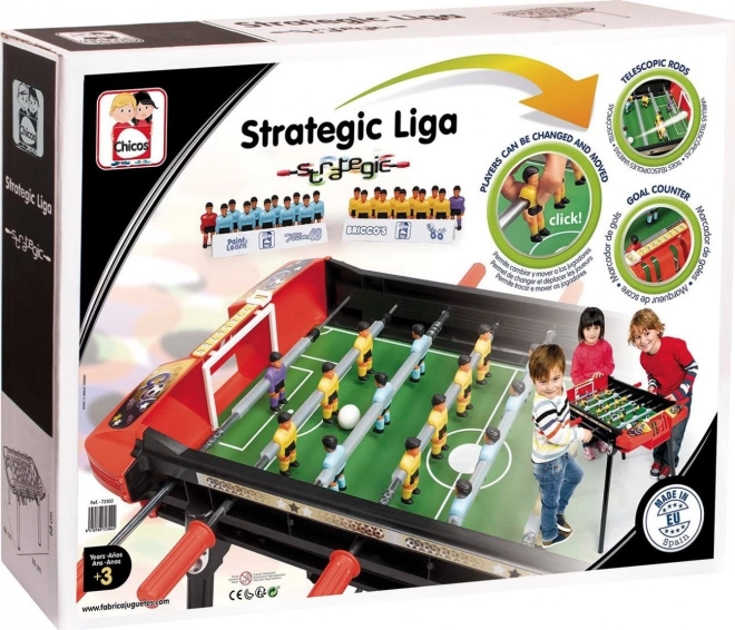 Der Chicos Tischfußball Strategic Liga ermöglicht es kleinen Spielern, ihr Team nach eigenen Vorstellungen durch austauschbare Figuren zu gestalten.