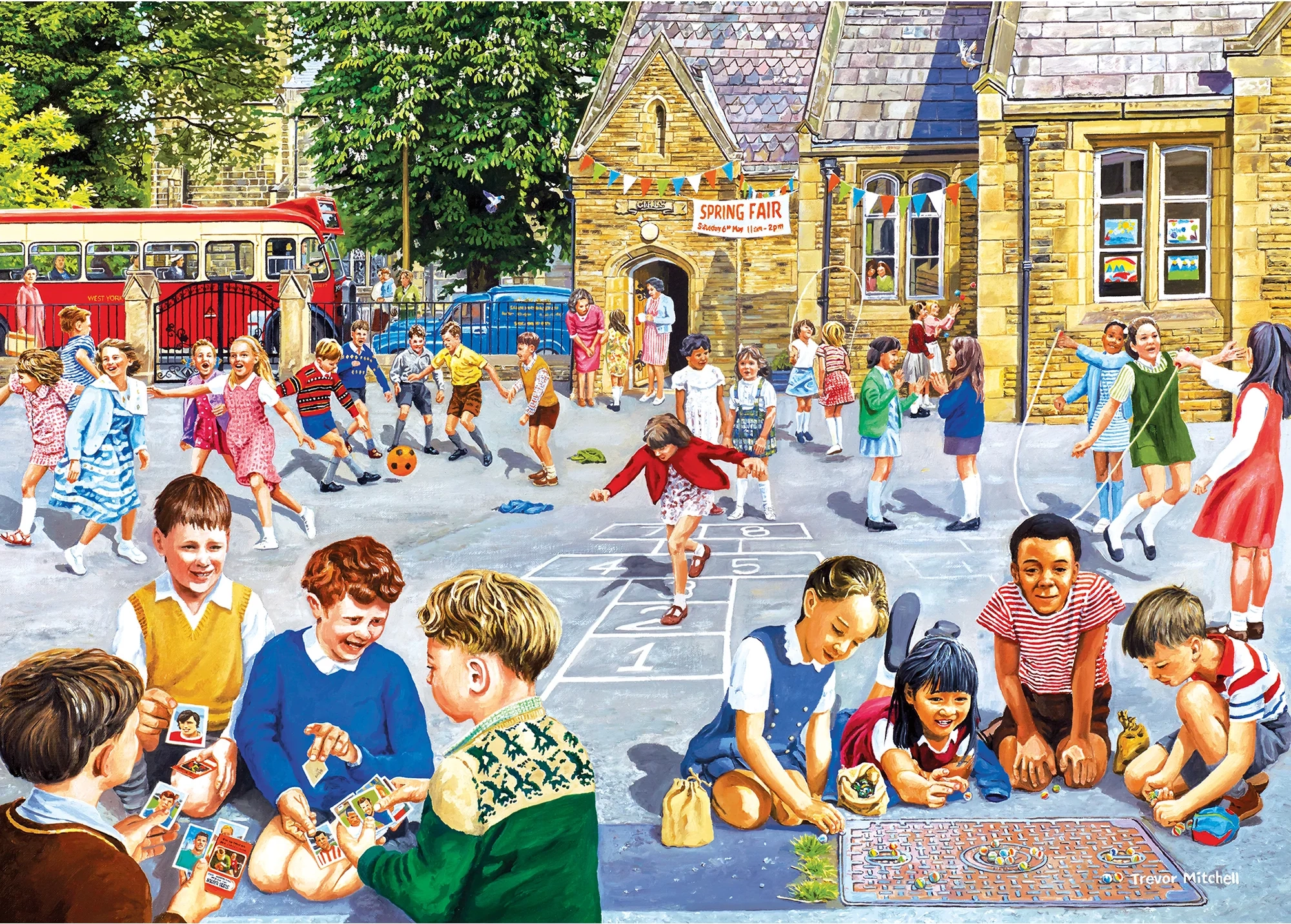 Wir alle haben schöne Erinnerungen an die Schulzeit, aber manche waren vielleicht besser als andere? Begeben Sie sich mit Trevor Mitchell auf eine Reise in die Vergangenheit und erleben Sie einige der schönsten Momente aus der Grundschule noch einmal. Die Packung enthält 4 Puzzles mit der gleichen Teileanzahl und Größe. Im Lieferumfang sind Vorlagen der zu legenden Motive enthalten.