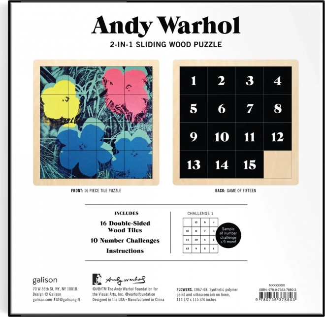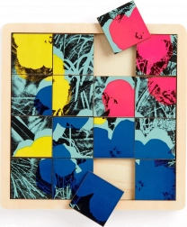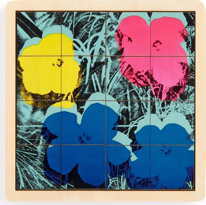 Schiebepuzzle mit Blumenmotiv von Andy Warhol bietet zwei Spielweisen: