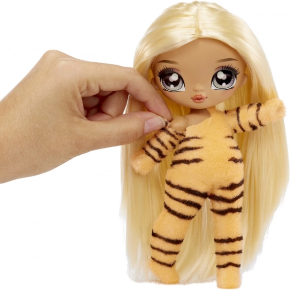 Erleben Sie eine völlig neue Art des Auspackens mit der Puppe Na! Na! Na! Fuzzy Surprise Tiger Girl. Dank der speziellen beflockten Oberfläche, die sanft abgewischt wird, enthüllt sich nach und nach eine Puppe mit langen Haaren, niedlichem Gesicht und modischen Accessoires im Tigerstil. Ein ideales Geschenk für Kinder, die Überraschungen, Mode und kreatives Spielen lieben.