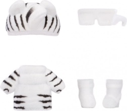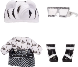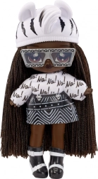 Zebra Girl kommt in einem schwarz-weißen Animal-Look mit Rock, „Na!“-Top, Mütze mit Ohren, Sonnenbrille und Schuhen – ideal für modisches Spiel.