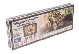 Dieses Holz-3D-Puzzle MONSTER TRUCK 3 bietet ein einzigartiges Bauerlebnis – ohne Kleber, ohne Schmutz, mit maximaler Präzision der Ausschnitte. Das Modell basiert auf den ersten Nachkriegs-Nutzfahrzeugen, die von der US-Armee eingesetzt wurden, und bringt eine authentische Offroad-Optik mit großen Rädern und robuster Kabine.