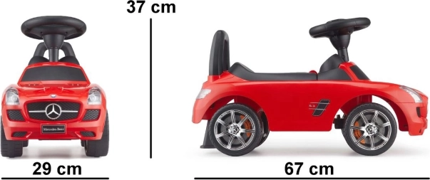 Das vom legendären Modell MERCEDES‑BENZ SLS AMG inspirierte Rutschauto wurde mit Augenmerk auf Details und den Komfort kleiner Fahrer entwickelt. Die aerodynamische Form, die robuste Verarbeitung und die einfache Bedienung sorgen für viel Fahrfreude, während die Rückenstütze und die stabile Konstruktion eine korrekte Sitzhaltung unterstützen.