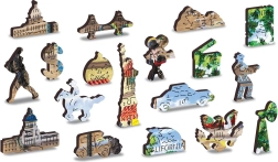 Der höhere Schwierigkeitsgrad bei geringerer Teilezahl garantiert Spaß für Erwachsene und ältere Kinder. Ein Teil der Puzzleteile ist in Form von Tieren, Bauwerken und ikonischen Symbolen gestaltet – einige können als kleine Figuren eigenständig stehen. Die ECO Friendly Verpackung ist 100 % plastikfrei und erfreut damit auch Nachhaltigkeitsfans.