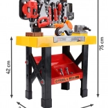 Diese realistische Kinderwerkbank bietet alles, was kleine Tüftler benötigen. Die robuste Tischplatte mit Bohrungen für Schrauben, der funktionale Schraubstock und die vertikale Bohrmaschine verleihen dem Spiel Authentizität. Untere Ablageböden, Fächer und Haken halten alle Werkzeuge ordentlich an ihrem Platz.