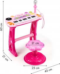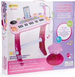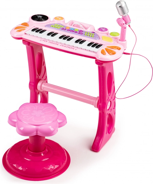 Mit diesem Spielzeug kann Ihr Kind in die Welt der Melodien und Klänge eintauchen und eigene Lieder komponieren. Das Keyboard sieht aus wie ein echtes Instrument und wird mit einem Hocker für bequemes Sitzen vor den Tasten geliefert.