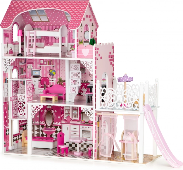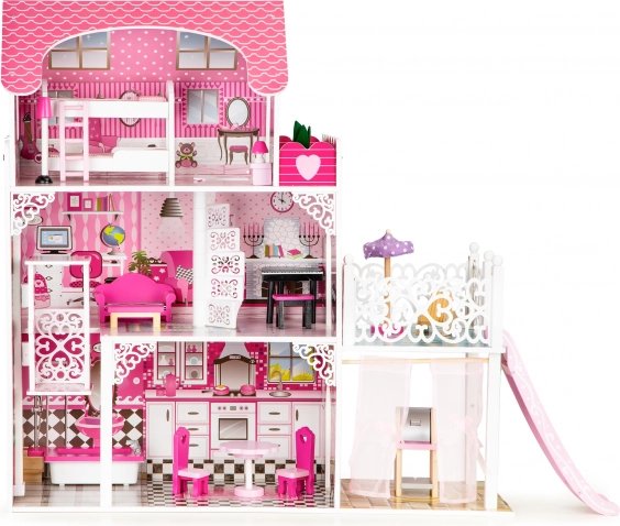 Eine einzigartige Terrasse mit Rutsche und einem gemütlichen Grill ermöglicht endlosen Spaß, während verschiedene dekorative Elemente und Möbel noch mehr Realismus hinzufügen. Das Haus enthält keine scharfen Kanten und ist für sicheres Spielen zertifiziert.