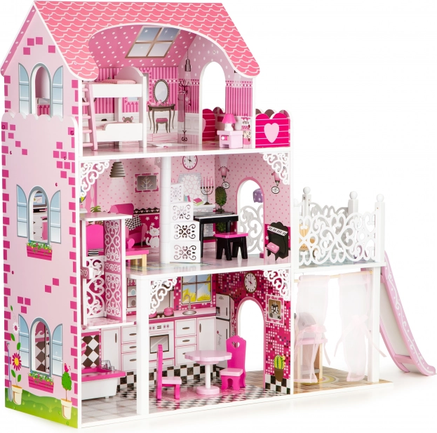 Das ECOTOYS Puppenhaus ist ein großartiger Ort für alle kleinen Liebhaber des fantasievollen Spiels. Es bietet 3 unabhängige Ebenen und insgesamt 7 Räume, die ein echtes Wohnhaus perfekt nachahmen. Jeder Raum ist in einem anderen Stil gehalten, was es den Kindern ermöglicht, als Inneneinrichter aufzutreten und die Möbel nach ihrer eigenen Fantasie zu arrangieren.