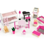 Im Lieferumfang ist auch ein Set aus 16 Möbelstücken enthalten, darunter ein Bett, ein Klavier, ein Sofa und viele weitere detailreiche Elemente, die den Kindern Raum für kreatives Rollenspiel und die Entwicklung manueller Fähigkeiten bieten.