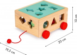 Dieser Holzwagen mit einem Satz von fünfzehn bunten Blöcken ist ein perfektes Werkzeug zur Entwicklung der Feinmotorik und kognitiven Fähigkeiten bei Kindern. Mit verschiedenen Einsätzen für Formen lernen Kinder grundlegende geometrische Formen und Farben kennen, was ihre Erkennungsfähigkeiten erhöht.