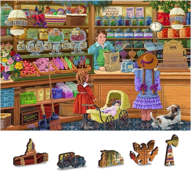 Die beidseitige 2-in-1-Ausführung bietet doppelt so viel Spaß: Vorderseite mit reich illustriertem Motiv einer altehrwürdigen Konditorei und Rückseite mit wiederholendem Muster zum Formpuzzeln. Höherer Schwierigkeitsgrad bei geringerer Anzahl einzigartiger Formen garantiert lange Stunden fokussierter Entspannung – ideal für Fortgeschrittene und engagierte Einsteiger.