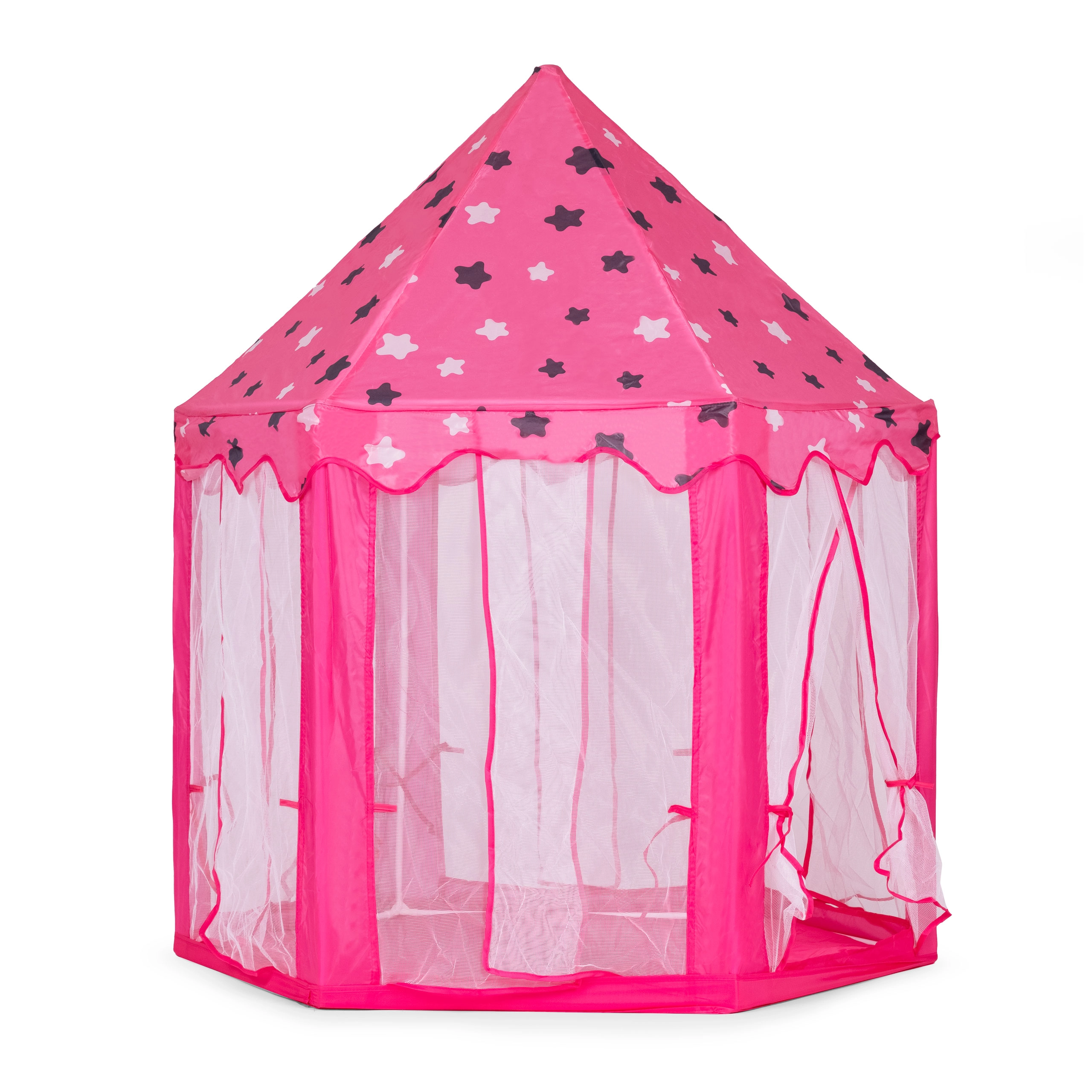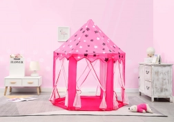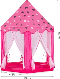 Verwandeln Sie das Kinderzimmer in ein märchenhaftes Königreich. Dieses Zelt in Form eines Prinzessinnenschlosses bietet eine gemütliche Ecke zum Spielen, Lesen und Entspannen. Dank des leichten, faltbaren Rahmens und der textilen Unterlage ist es drinnen wie draußen schnell aufgebaut. Transparente Netzpaneele sorgen für Luftstrom und guten Überblick über das Geschehen im Inneren.