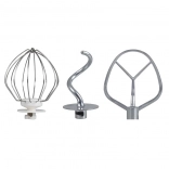 Im Set enthalten sind ein Knet-Haken, eine K-Rührer für Mischen und ein Schneebesen. Sämtliches Zubehör ist spülmaschinengeeignet für einfache Pflege.