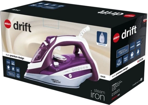 Das Dampfbügeleisen Eldom Drift bietet dank innovativer Funktionen die ideale Kombination aus Leistung und Komfort. Es ist mit einem ANTI DRIP-System ausgestattet, das das Tropfen von Wasser verhindert, wenn die Temperatur nicht hoch genug für die Dampferzeugung ist. Mit keramikbeschichtetem Fuß sorgt es für sanftes Gleiten und effektives Bügeln auch der schwierigsten Falten.