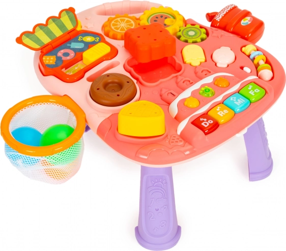 Interaktiver Spielspaß: Mit einem abnehmbaren Spieltisch, Ballkorb, buntem Piano und mehr.