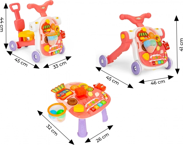 4-in-1-Funktion: Lauflernwagen, Rutschauto, Scooter und Lerntisch in einem.