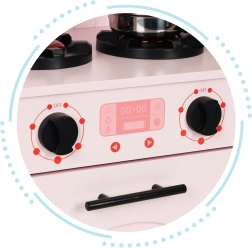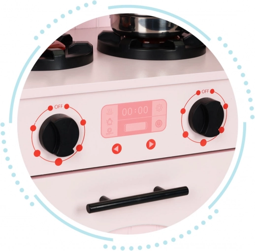 Die Küche ist aus hochwertigen Materialien hergestellt, was eine sichere Konstruktion ohne scharfe Kanten gewährleistet. Die farbenfrohe Ausführung und Details verleihen ihr Authentizität und Eleganz, wodurch sie zum Schmuckstück jedes Kinderzimmers wird.