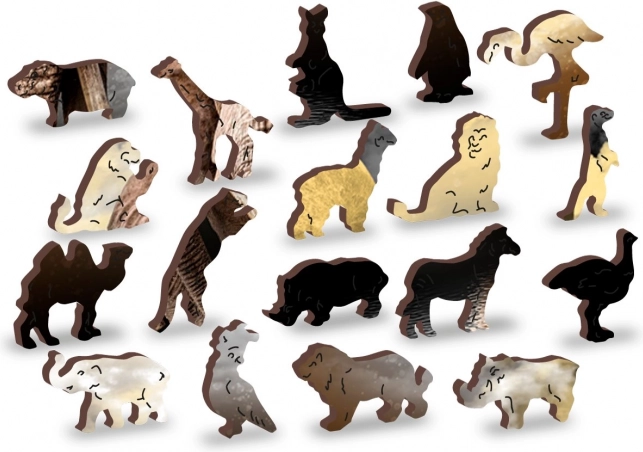 Einige Teile sind sorgfältig ausgeschnitten, sodass sie bekannte Bauwerke, Gegenstände oder Tiere entsprechend dem Motivthema darstellen.
