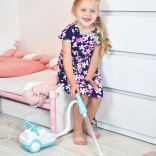 Dieser blau-weiße Kinderstaubsauger imitiert ein echtes Gerät – nach dem Einschalten leuchtet er, macht realistische Geräusche und kann dank Saugfunktion sogar die beiliegenden Polystyrolkügelchen aufsaugen. Ideal für Rollenspiele, fördert Verantwortungsbewusstsein und vermittelt spielerisch Ordnung halten.