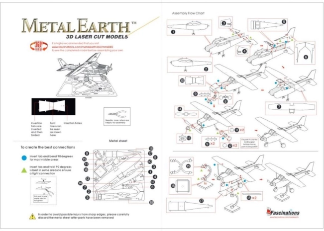 Entnehmen Sie die einzelnen Teile aus den Metallblechen; bei Bedarf verwenden Sie einen kleinen Seitenschneider (nicht enthalten). Die Teile werden mithilfe von Verschlüssen verbunden, die aus einem Haken (Nase) und einer Öffnung bestehen. Biegen Sie den Haken mit einer kleinen, schmalen Zange (nicht enthalten) um und verbinden Sie nach und nach alle Verschlüsse, bis ein sehr realistisches Meisterstück entsteht!