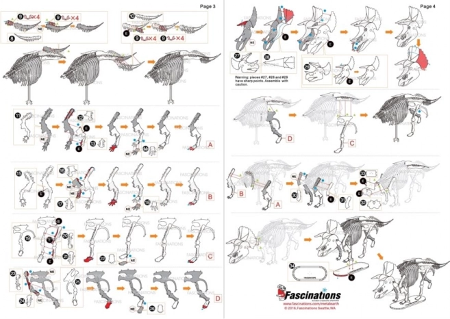 Entnehmen Sie die einzelnen Teile aus den Metallbögen; verwenden Sie bei Bedarf kleine Seitenschneider (nicht enthalten). Die Teile werden mittels Verriegelungen aus Zapfen und Öffnungen miteinander verbunden. Biegen Sie den Zapfen mit einer kleinen, feinen Zange um (nicht enthalten) und verbinden Sie nach und nach alle Verriegelungen, bis ein äußerst realistisches Meisterstück entsteht!