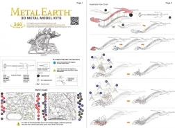 Entnehmen Sie die einzelnen Teile aus den Metallplatten, bei Bedarf mit kleinen Seitenschneidern (nicht enthalten). Die Teile werden mittels Laschen- und Lochverbindungen zusammengefügt. Biegen Sie die Laschen mit einer kleinen Flachzange (nicht enthalten) um und verbinden Sie nach und nach alle Verriegelungen, bis ein sehr realistisches Meisterstück entsteht!