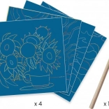 Im Set enthalten: 4 Bilder 20×20 cm, ein doppelseitiges Holzstäbchen und eine Anleitung.