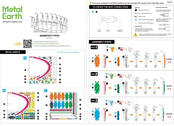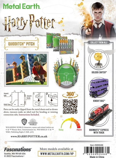 Entdecken Sie die Magie der Welt von HARRY POTTER in Form eines metallenen 3D-Modells des Quidditch-Feldes. Das METAL EARTH Set bietet präzise Ausstanzungen aus Stahlblech mit feiner Lasergravur, wodurch die Stadiontürme, Ringe und das Spielfeld bis ins letzte Detail zur Geltung kommen.