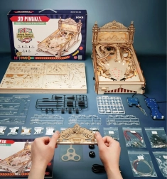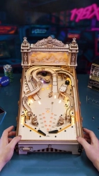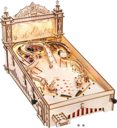 Begeben Sie sich auf ein Abenteuer mit dem Holz-Puzzle der Flippermaschine. Dieses Modell bringt Sie in die Atmosphäre der 90er Jahre mit Retro-Zirkus-Design. Es bietet stundenlangen Spaß für alle kreativen Köpfe ab 14 Jahren.