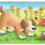 Robuste, stabile Puzzleteile aus extra starkem Karton fördern bei Kindern die Entwicklung der Motorik, die Konzentration und die Fantasie. Kinder können vier verschiedene Bilder mit unterschiedlicher Anzahl an Teilen zusammensetzen.