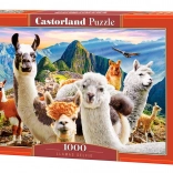 Das Puzzle mit dem Motiv Llamas Selfie bietet 1000 Teile, die nach dem Zusammenfügen eine Größe von 68 x 47 cm erreichen. Die durchschnittliche Größe eines Teils ist 1,9 x 1,7 cm.
