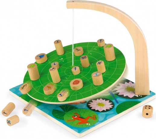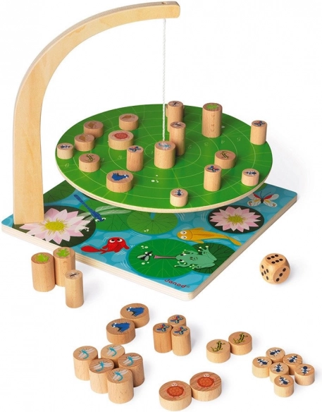 Wer bringt die Tiere am längsten auf der Seerose unter? Die Seerose ist ein Gesellschaftsspiel zur Verbesserung von Geschicklichkeit und Feinmotorik. Um im Teich zu bestehen, braucht es Fingerspitzengefühl und Strategie! Platziere die Tierfiguren auf der Seerose, ohne dass sie kippt. Ziel des Spiels ist, dass die Tiere nicht von der Seerose fallen. Der Lieferumfang umfasst eine hölzerne Grundplatte mit hängender Seerose, 42 Holzspielsteine mit Tierfiguren und 1 Holz-Würfel. Die Tatsache, dass die Platte nicht völlig eben ist, hat keinen Einfluss auf die Spielbarkeit des Produkts. Kleiner Tipp: Je sorgfältiger du die Tierfigur platzierst, desto weniger gerät die Seerose in Bewegung. Das Spiel fördert: – Geschicklichkeit und Feinmotorik – strategisches Denken – Konzentration. Geeignet für Kinder ab 6 Jahren.