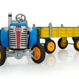 Legendärer tschechischer Klassiker für kleine und große Fans. Der Metalltraktor ZETOR mit funktionsfähigem Federwerk zum Aufziehen bietet ein realistisches Fahrerlebnis – drei Vorwärtsgänge, Leerlauf und Rückwärtsgang, dazu präzise Lenkung per Lenkrad und eine Handbremse zum sicheren Anhalten. Inklusive farblich abgestimmtem Pritschenanhänger mit klappbarer Heckklappe für Be- und Entladung.